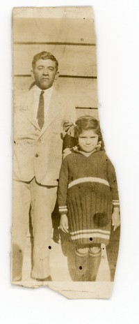 [Arcadio Gallardo junto a una pequeña niña] [Fotografía]. Chile : [Editor no identificado] , 1936. 1 Fotografía : Formato digital, monocromo. .