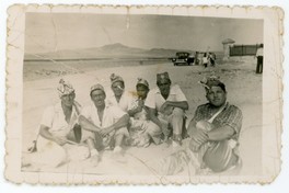[Grupo de hombres en la playa vestidos para una celebración religiosa] [Fotografía]. Chile : [Editor no identificado] , [1940?]. 1 Fotografía : Formato digital, monocromo. .