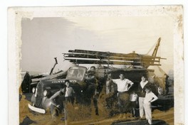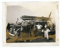 [Grupo de hombres posando delante de un carro de bomberos] [Fotografía]. Chile : [Editor no identificado] , [1950]. 1 Fotografía : Formato digital, monocromo. .