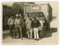 [Grupo de hombres delante de un camión] [Fotografía]. Chile : [Editor no identificado] , 1955. 1 Fotografía : Formato digital, monocromo. .