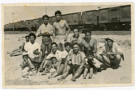 [Retrato de grupo familiar mixto en un paseo a la playa Brava de Caldera] [Fotografía]. Chile : [Editor no identificado] , 1954. 1 Fotografía : Formato digital, monocromo. .