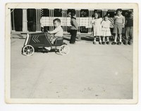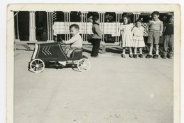 [Niño sobre un auto de metal] [Fotografía]. Chile : [Editor no identificado] , [1950?]. 1 Fotografía : Formato digital. .