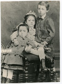 [Tres niños abrazados] [Fotografía]. Chile : [Editor no identificado] , 1880. 1 Fotografía : Formato digital. .