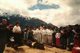 [Grupo de personas participando de un bautizo evangélico] [fotografía]. Chile : [Editor no identificado] , [Fecha no identificada]. 2 Fotografías : Formato digital, Policromo. .