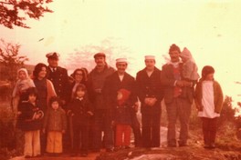 Retrato de un grupo de personas civiles, uniformados y niños, entre quienes se identifican: Mauricio Riquelme, Carmen Rojas, Claudia Valdés, Mabel Valdés, Ivan Valdés, Ivone Valdés, Eliana y Gines Barría entre otros.
