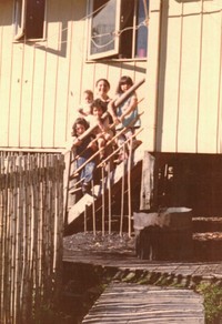 [Grupo familiar en la escalera de acceso a la casa ECA ] [fotografía]. Chile : [Editor no identificado] , 1976. 1 Fotografía : Formato digital, Policromo. .