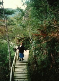 En la fotografía aparece Carmen Rojas Chaves sobre la pasarela del sector "Playa Ancha".