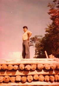 En la fotografía aparece el Sargento Raimundo Gracia realizando acopio de postes en castillo de madera.