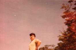 [Hombre de pie, sobre un conjunto de postes] [fotografía]. Chile : [Editor no identificado] , 1976. 1 Fotografía : Formato digital, Policromo. .