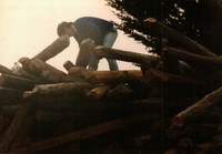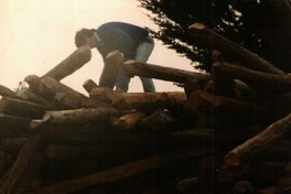 [Hombre acomodando postes de ciprés] [fotografía]. Chile : [Editor no identificado] , 1990. 1 Fotografía : Formato digital, Policromo. .