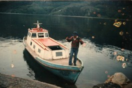 [Jaime Maripillan sobre una embarcación] [fotografía]. Chile : [Editor no identificado] , 1988. 1 Fotografía : Formato digital, Policromo. .