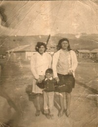 [Dos mujeres sosteniendo a un niño de sus manos] [fotografía]. Chile : [Editor no identificado] , [Fecha no identificada]. 1 Fotografía : Formato digital, Monocromo. .