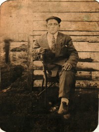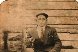 [Hombre joven sentado al exterior de una vivienda] [Fotografía]. Chile : [Editor no identificado] , [fecha no identificada]. 1 Fotografía : Formato digital, Monocromo. .