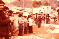 [Grupo de hombres en un acto de inauguración en Caleta Tortel] [fotografía]. Chile : [Editor no identificado] , 1981. 1 Fotografía : Formato digital, Policromo. .