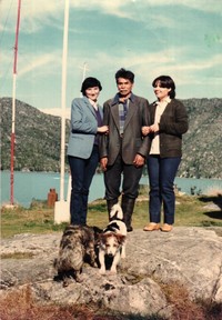 [Retrato grupal mixto de tres personas en Caleta Tortel] [fotografía]. Chile : [Editor no identificado] , 1983. 1 Fotografía : Formato digital, Policromo. .