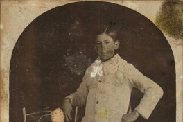 [Retrato individual de un niño apoyado sobre una silla] [fotografía]. Chile : [Editor no identificado] , [Fecha no identificada]. 1 Fotografía : Formato digital, Monocromo. .