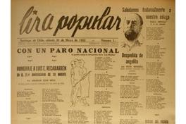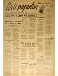 Con un paro nacional el pueblo exige la derogación de la "Ley Maldita" [artículo]. Santiago de Chile : [Democracia], 1952. Democracia (Santiago, Chile). -- (mayo 31, 1952) 1 hoja : ilustraciones, retratos ; 55 x 39 cm. .
