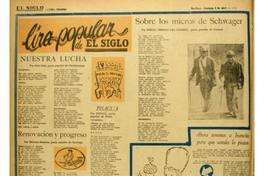 Nuestra lucha [artículo] / Julio Solís. Santiago : El Siglo, 1956. El Siglo (Santiago, Chile). -- (abril 8, 1956), página 4 1 hoja : ilustraciones ; 57 x 40 cm. .