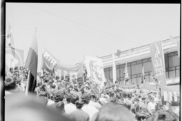 Fidel Castro Ruz se dirige a los presentes apostados en la Universidad de Concepción, trabajadores, campesinos, estudidantes y militantes en su mayoría.