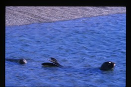 [Paisaje antártico chileno; lobos marinos se desplazan por el agua] [fotografía] Jack Ceitelis.
