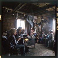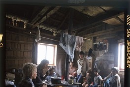 Baker [Familia de colonos alrededor de una cocina a leña; interior de su casa en el valle del Río Baker] [fotografía] / Jack Ceitelis. Chile : Jack Ceitelis, [19--]. Diapositiva : policromo, gelatina sobre poliester ; 6 x 6 cm. .