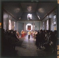 [Festividad de Nuestra Señora del Carmen de La Tirana; bailarines de la "Sociedad Religiosa Morenos San Lorenzo" y peregrinos; interior del Santuario] [fotografía] / Jack Ceitelis. Chile : Jack Ceitelis, 1981. Diapositiva : policromo, gelatina sobre poliester ; 6 x 6 cm. .