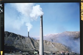 [Mina El Teniente; Fundición Caletones] [fotografía] / Jack Ceitelis. Chile : Jack Ceitelis, [1989]. Diapositiva : policromo, gelatina sobre poliester ; 6 x 6 cm. .