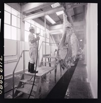 [Planta faenadora de carnes, Rancagua; área lavado de reses] [fotografía] Jack Ceitelis.