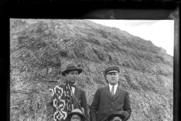 [Benedicto Rivas junto a Alfredo Kenner y dos niños mapuches] Benedicto Rivas. Cholchol, Chile: Benedicto Rivas [1920] 1 placa de vidrio monocromo, 9 x 12 cm. .