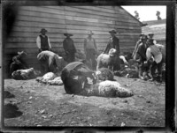 Materias: Agricultura - Fotografías - Cholchol (Chile) - Ciudades y pueblos - Esquileo de ovejas - Rivas, Benedicto
