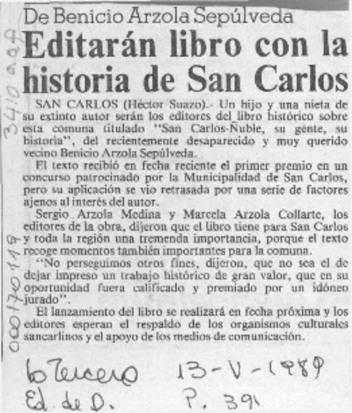ARZOLA SEPULVEDA, BENICIO - SAN CARLOS (ÑUBLE), SUS HOMBRES, SU HISTORIA