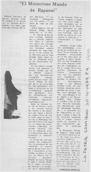 El misterioso mundo de Rapanui [artículo] Gonzalo Orrego.