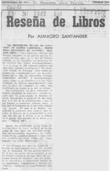 El Misterioso mundo de Rapanui [artículo] Almagro Santander.