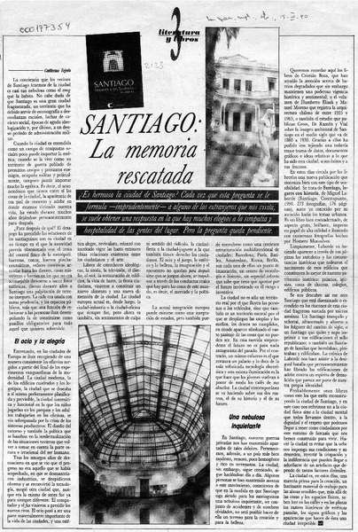 Santiago, la memoria rescatada [artículo] Guillermo Tejeda.