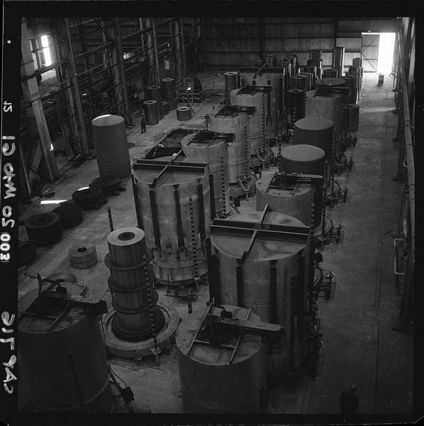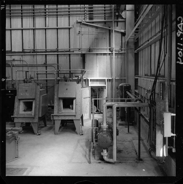 [Compañía de Acero del Pacífico : Planta Siderúrgica de Huachipato; hornos "Lindberg" para fundición] [fotografía] Luis Ladrón de Guevara.