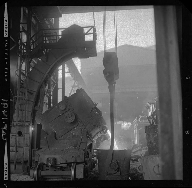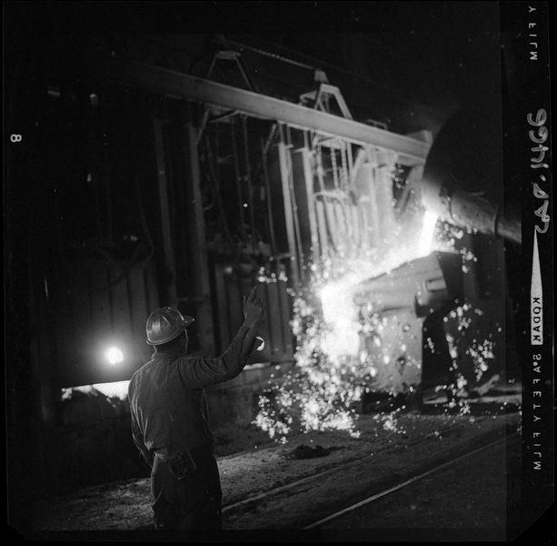 [Compañía de Acero del Pacífico : Planta Siderúrgica de Huachipato; proceso de fundición] [fotografía] Luis Ladrón de Guevara.