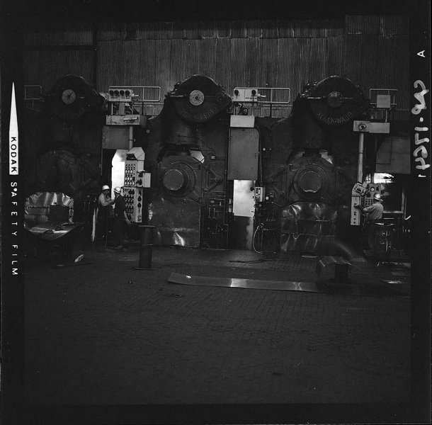 [Compañía de Acero del Pacífico : Alto Horno, fundición de acero Huachipato; proceso de laminación] [fotografía] Luis Ladrón de Guevara.