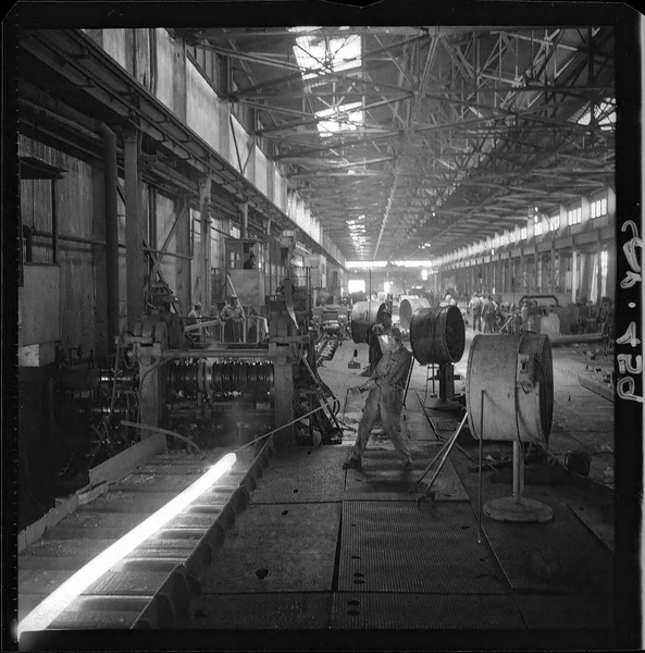 [Compañía de Acero del Pacífico : Planta siderúrgica Huahipato; barras redondas] [fotografía] Luis Ladrón de Guevara.