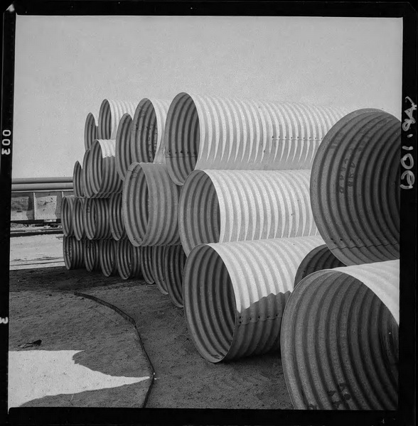 [Compañía de Acero del Pacífico : Planta siderúrgica Huahipato; tubos de acero corrugado] [fotografía] Luis Ladrón de Guevara.