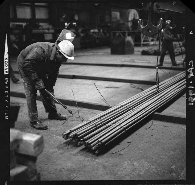 [Compañía de Acero del Pacífico : Planta siderúrgica Huachipato; barra cuadrada] [fotografía] Luis Ladrón de Guevara.