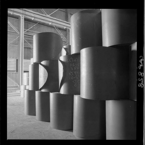 [Compañía de Acero del Pacífico : Alto Horno, fundición de acero Huachipato; Bobinas de acero] [fotografía] Luis Ladrón de Guevara.