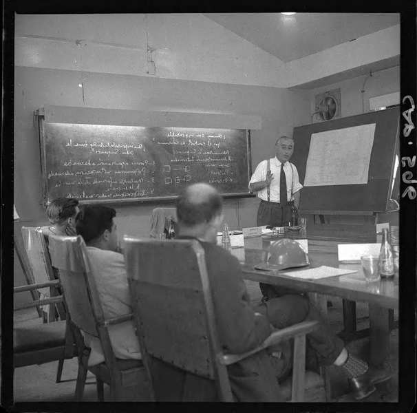 [Compañía de Acero del Pacífico : Planta siderúrgica Huachipato; reunión de trabajo] [fotografía] Luis Ladrón de Guevara.