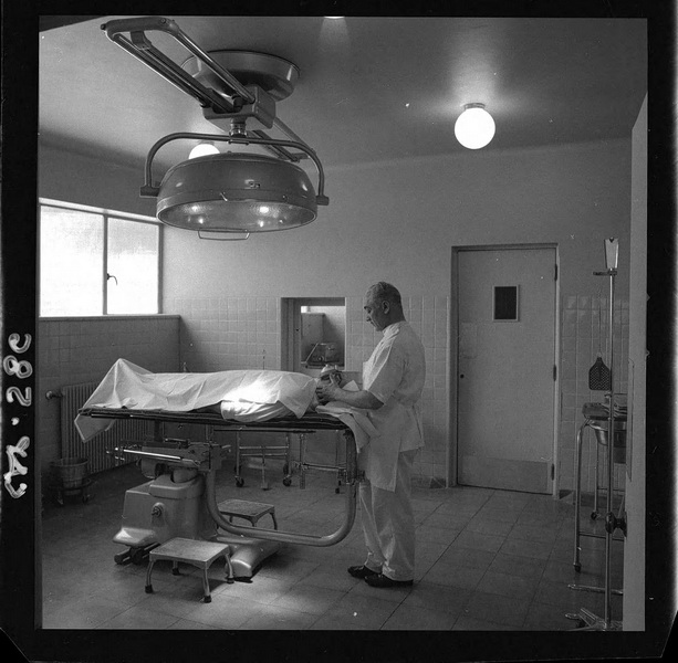 [Compañía de Acero del Pacífico : Planta siderúrgica Huachipato: Sala de enfermería] [fotografía] Luis Ladrón de Guevara.