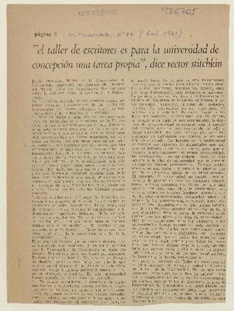 "El Taller de Escritores es para la Universidad de Concepción una tarea propia", dice Rector Stitshkin [artículo].