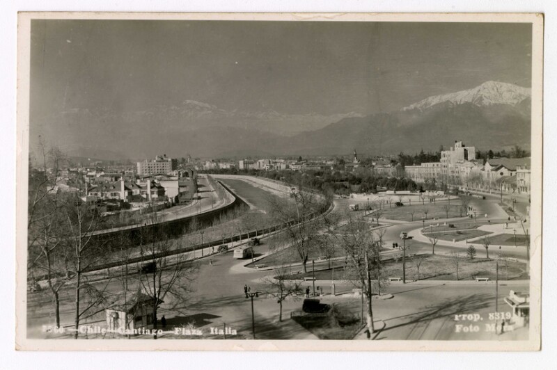 Cordillera de los Andes - Plaza Italia (Santiago, Chile) - Edificios, estructuras, etc - Santiago (Chile : Ciudad) - Historia - Fotografías - Arquitectura - Puentes - Tarjetas postales - Urbanismo - Río Mapocho (Chile)