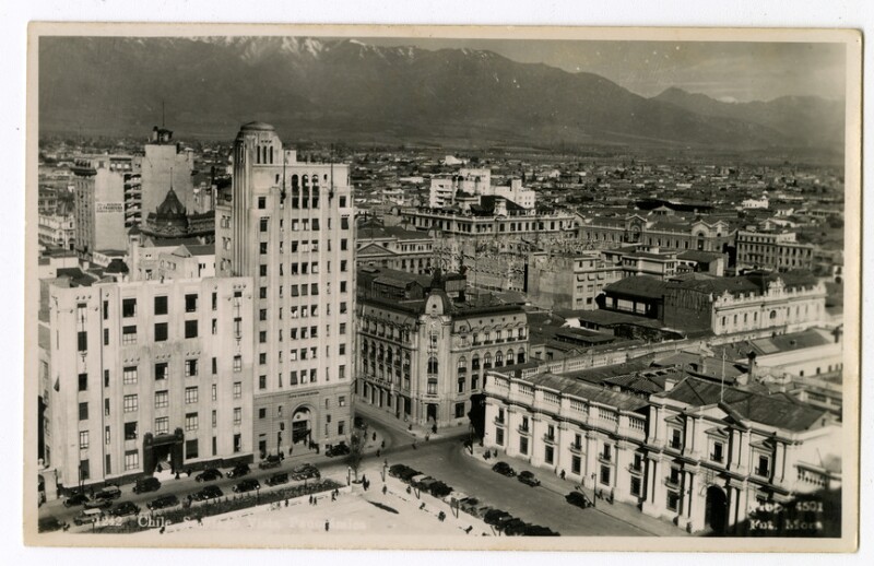 Historia - Fotografías - Chile - Arquitectura - Edificios - Monumentos - Edificios históricos - Tarjetas postales - Palacio de La Moneda (Santiago, Chile) - Plaza de la Constitución (Santiago, Chile) - Hotel Carrera (Santiago, Chile) - Santiago (Chile : Ciudad) - Edificios, estructuras, etc - Smith Solar, Josué - Smith Miller, José - Postales, Diego