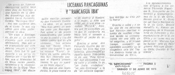 Liceanas rancaguinas y "Rancagua 1814". [artículo]