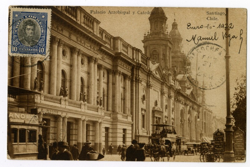 Historia - Arquitectura religiosa - Fotografías - Iglesia Católica - Vega, Manuel - Edificios históricos - Tarjetas postales - Arquitecto - Catedral de Santiago (Chile) - Catedrales - Santiago (Chile : Ciudad) - Toesca, Joaquín - Palacio Arzobispal de Santiago (Chile) - Diez, Quintiliano