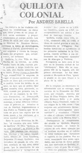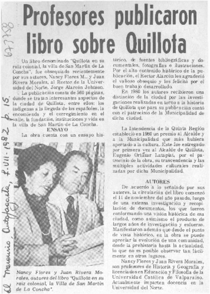 Autores chilenos - Flores, Nancy - Quillota en su raíz colonial - Rivera, Juan