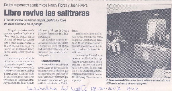 Autores chilenos - Flores, Nancy - Rivera, Juan - Tras las huellas de las oficinas salitreras. Rica aventura y prosperidad. Presencia de la Iglesia Católica
